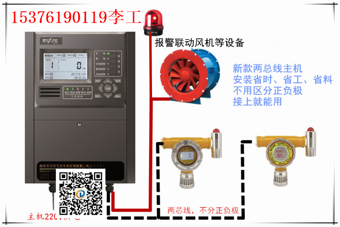 探測器把采集到的氣體濃度信號轉(zhuǎn)換為電信號,并以(4-20)mA標(biāo)準(zhǔn)信號的方式傳給控制器;控制器采用分線式設(shè)計,一路控制器對應(yīng)一路探測器,控制器接收探測器單元傳上來的(4-20)mA信號,經(jīng)過處理、邏輯分析,以液晶數(shù)字光柱同步顯示、聲光報警的方式反應(yīng)出來,記錄報警時間和報警濃度值,并啟動所連接的風(fēng)機(jī)、磁閥或其它消防設(shè)備。